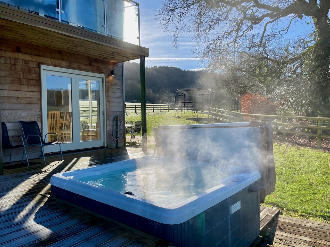 Nestled on the gentle slopes of the Blackdown Hills between Honiton and Cullompton in East Devon, we offer a new contemporary, newly furnished, 6 bedroom Eco House with its own hot tub. It is an idyllic family holiday destination within an Area of Outstanding Natural Beauty with the most outstanding views. Dogs are welcome and for those who want to venture out there are some great woodland walks within a short stroll. Exclusive coarse fishing available in the small Marlpit lake is only yards away.
